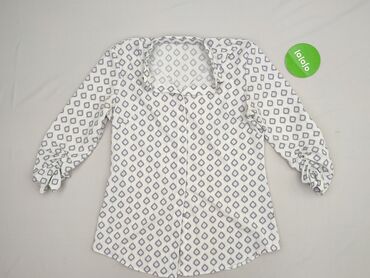 Bluzka damska S’Za - Kolor: biały z drobnym, geometrycznym wzorem w odcieniach czerni i jasnego różu - Materiał: 100% wiskoza (lekka, przewiewna, miękka) - Krój: luźniejszy, lekko wydłużony, z del...Stan: