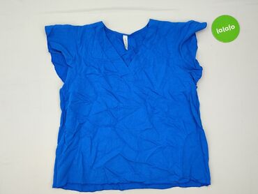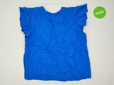 Bluzka damska w kolorze jasnoniebieskim. - Fason: luźny, z marszczeniem/ściągaczami przy dekolcie, rękawkach i u dołu (gumka). Okrągły, lekko elastyczny dekolt – można nosić klasycznie lub z odsło...Stan: