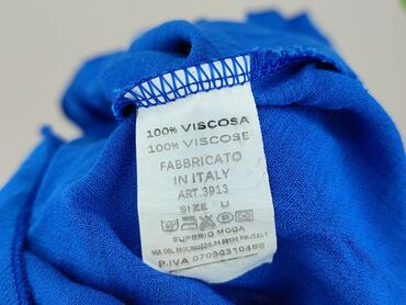 Krótki rękawBluzka damska w kolorze niebieskim, wykonana w 100% z wiskozy. Charakteryzuje się dekoltem w kształcie litery V i krótkimi, falbankowymi rękawami. Idealna na co dzień, zapewnia komfort noszenia dzięki lekkiemu materiałowi. Zaprojektowana jako część "NEW COLLECTION", pasuje do wielu stylizacji. Wyprodukowana we Włoszech, co świadczy o dbałości o szczegóły i jakość.