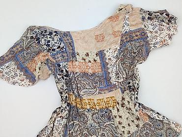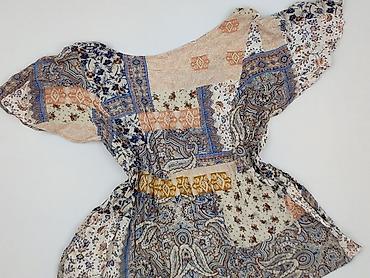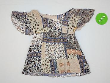 Damska bluzka z krótkim rękawem, wzór patchwork/boho - Fason: lekko dopasowany, taliowany - Dekolt: okrągły z małym rozcięciem i marszczeniem na środku - Rękawy: krótkie - Wzór: patchworkowy miks ...