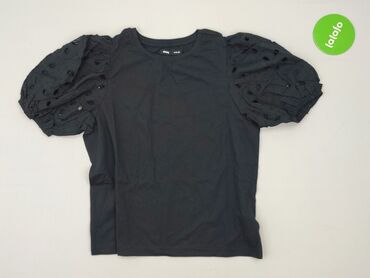 Bluzka damska Sinsay, rozmiar S, kolor czarny. - Krój: luźna, odcinana, z delikatnymi marszczeniami w trzech poziomych panelach, tworzących lekko rozkloszowaną linię. - Rękawy: 3/4, bufiaste, zako...