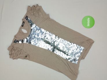 Szara bluzka/długi top z połyskującymi wstawkami z cekinów. - Kolor: jasny szary melanż - Krój: luźny, z obniżoną linią ramion - Rękawy: 3/4 - Dekolt: okrągły - Ozdoby: duże panele z białych/srebr...