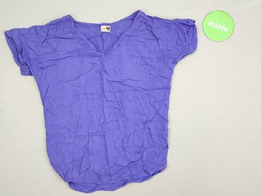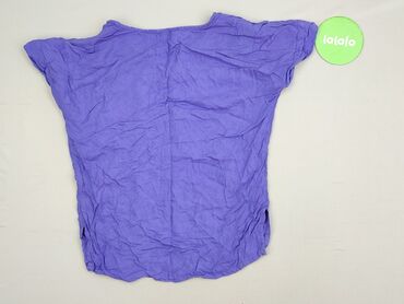 Krótki rękawFioletowa bluzka damska z krótkim rękawem i dekoltem w kształcie litery V. Charakteryzuje się luźnym krojem i marszczonym materiałem, co nadaje jej swobodny wygląd. Idealna do codziennych stylizacji, zapewniająca komfort noszenia.