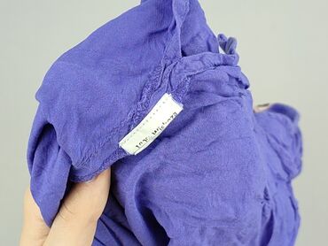 Bluzka damska z dekoltem w kształcie litery V, ozdobiona wzorem w kwiaty w odcieniach błękitu i szarości na białym tle. Charakteryzuje się bufiastymi, luźnymi rękawami i asymetrycznym dołem, który ...Stan: