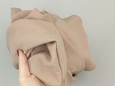 Bluzka damska z miękkiej dzianiny, beżowa. - Krój: dopasowany, krótkie rękawy. - Kołnierz: wysoka, miękka stójka/komin układający się w luźne fałdy. - Materiał: 72% wiskoza, 28% nylon – przyjemna ...