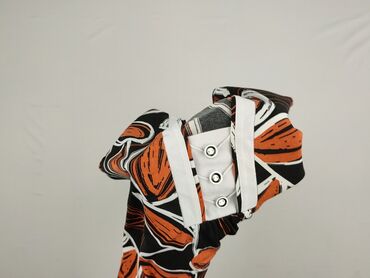 Bluzka damska z krótkim rękawem, zapinana na guziki. - Krój: lekko pudełkowy, z kołnierzem z klapami; delikatnie wydłużony tył. - Rękawy: krótkie, luźne. - Wzór: gęste, cienkie paski w odcieniach...