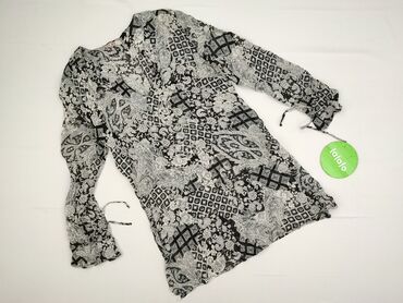 Na co dzieńPrzedmiotem ogłoszenia jest bluzka damska z dekoltem w serek i długimi rękawami. Bluzka charakteryzuje się czarno-białym wzorem w kratę i paisley, co nadaje jej wyrazisty wygląd. Rękawy zakończone są wiązaniami, dodającymi subtelności. Bluzka jest lekka i przewiewna, idealna na codzienne wyjścia.