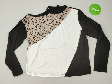 Bluzka damska SHEIN, rozmiar EU L (40/42, US 10). - Fason asymetryczny: jedna strona czarna, druga w panterkę. - Dół lekko zaokrąglony, linia guzików dekoracyjnie pośrodku łącząca dwie części. - Rę...