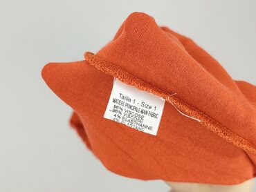 Bluzka damska w kolorze intensywnej pomarańczy. - Fason: luźny, prosty krój - Dekolt: w kształcie litery V - Rękawy: krótkie z falbanką - Rozmiar z metki: S - Materiał: miękka, gładka dzianina (na...