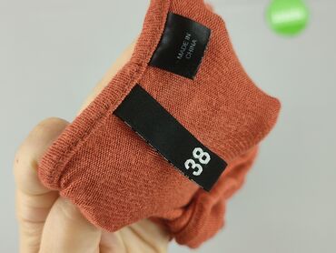 Długi rękawBluzka damska z długim rękawem marki Divided H&M w odcieniu pomarańczowo-brązowym. Dekolt typu łódka, a materiał z domieszką lnu, co zapewnia lekkość i przewiewność. Idealna do codziennych stylizacji, luźny krój z asymetrycznym dołem dodaje jej oryginalności, a długie rękawy zapewniają komfort w chłodniejsze dni. Wyprodukowana w Chinach.