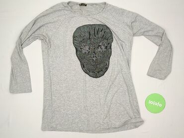 Bluzka damska z długim rękawem - Kolor bazy: jasnoszary melanż - Wzór: kolorowe motyle i gałązki w odcieniach niebieskiego, zielonego, fioletu i żółci - Fason: klasyczny, lekko dopasowany, okrągły...Stan: