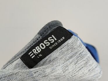 Bluzka damska ERBOSSI L/XL - Fason: prosta, z okrągłym dekoltem - Rękaw: 3/4 - Wzór: poziome pasy w odcieniach szarości, granatu, niebieskiego i czerni; różne szerokości pasków nadające dynamiki -...Stan: