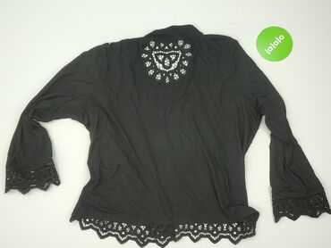 Czarna koronkowa narzutka/bolerko marki Konfex, rozmiar XL. - Lekko transparentna koronka z roślinnym wzorem - Skład: 70% poliester, 30% wiskoza (metka ze składem widoczna) - Fason otwarty, bez za...