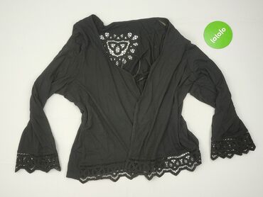 Czarna narzutka/bolerko damskie Top Secret Women - Rozmiar z metki: 40 - Krój kopertowy, wiązanie z boku - Delikatny, lejący materiał - Rękawy/wykończenia z koronkową lamówką - Kolor: czarny - Lek...