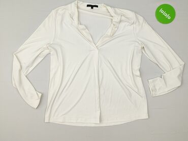 Bluzka damska z długim rękawem w kolorze ecru/kremowym. - Krój: lekko taliowany, z delikatnie wydłużonym tyłem. - Dekolt: w serek z krótką stójką. - Zapięcie: listwa z 4 guzikami z przodu. - Rękaw...