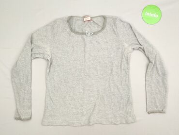 Bluzka damska z długim rękawem w kolorze jasnoszarym. Charakteryzuje się okrągłym dekoltem ozdobionym błyszczącymi cekinami oraz szerokim pasem białej koronki biegnącej wzdłuż dolnego obszycia. Blu...