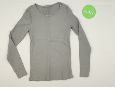 Bluzka damska z długim rękawem w kolorze jasnoszarym, wykonana z prążkowanego materiału. Posiada okrągły dekolt wykończony koronkową lamówką oraz małą kokardkę na środku. Rękawy i dół bluzki równie...