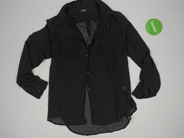 Czarna, lekka koszula damska z długim rękawem - Krój: klasyczny kołnierzyk, zapięcie na guziki z przodu - Materiał: 100% poliester – cienki, półprzezroczysty, miękki i przewiewny - Rękawy zakończo...Stan: