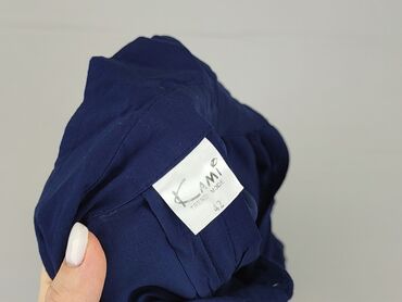 Bluzka damska w kolorze granatowym, rozmiar XL. - Krój: luźny, z okrągłym dekoltem; subtelne zakładki z przodu. - Rękawy: krótkie, wykonane z ażurowej koronki o kwiatowym wzorze. - Materiał: lekki...