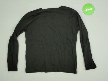 Czarna bluzka damska z długim rękawem i głębokim dekoltem V z koronkową wstawką. - Rozmiar: M (metka) - Skład materiału: 95% poliester, 5% elastan - Faktura tkaniny: delikatny, prążkowany/tekstury...