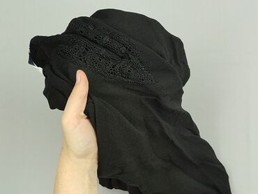 Czarna bluzka damska z koronką - Krój: luźny, z krótkim rękawem typu kimono - Dekolt: łódkowy - Detale: wstawki z koronki na ramionach i górnej części pleców, koronkowe wykończenia rękawów - Dół l...