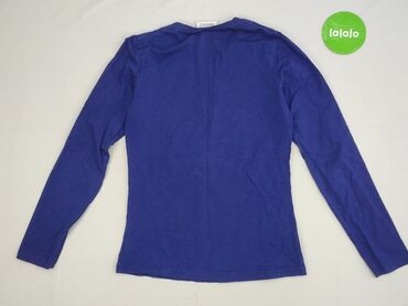 Bluzka damska Yessica (C&A) – rozmiar XS - Fason: klasyczny top z długim rękawem - Dekolt: okrągły - Kolor: granatowy melanż z białym, roślinnym wzorem (gałązki, liście, kwiaty) - Materiał: dziani...