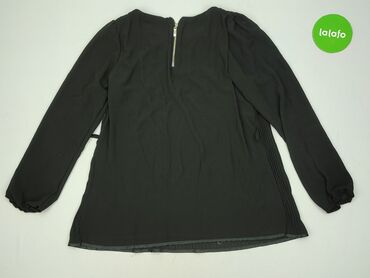 Bluzka damska, czarna, z długim rękawem - Fason: swobodny, delikatnie rozkloszowany dół - Materiał: lekka, półprzezroczysta tkanina szyfonowa; przód z drobnymi, pionowymi plisami - Rękawy: długie, ...Stan: