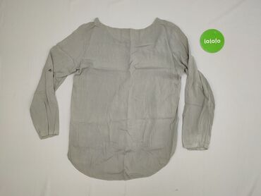 Lekka bluzka damska w jasnoszarym kolorze. Charakteryzuje się luźnym krojem, marszczeniami przy dekolcie i długimi rękawami z możliwością podwinięcia i zapięcia na guzik. Wykonana w 100% z wiskozy,...Stan: