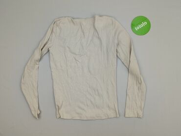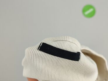 Dzianinowa bluzka damska w paski - Rozmiar: S (WOMEN S – na metce) - Krój: półdopasowany, okrągły dekolt, krótkie rękawy z ściągaczami, ściągacz u dołu - Wzór/kolor: beżowe tło z poziomymi białymi...