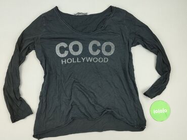 Długi rękawBluzka damska z długim rękawem, kolor grafitowy. Luźny krój z szerokim, zaokrąglonym dekoltem. Z przodu nadruk CO CO HOLLYWOOD w jasnoszarym kolorze. Materiał cienki, miękki i elastyczny (dzianina bawełniana z domieszką elastanu – na dotyk). Tył gładki, bez nadruków. Idealna do stylizacji casual.