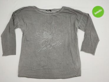 Bluzka damska Yessica (rozmiar M) - Fason: luźny, z zaokrąglonym dołem i obniżoną linią ramion - Rękawy: 3/4 z dzianiny melanżowej w odcieniach szarości - Dekolt: łódka, wykończony tą samą dzianin...