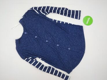 Granatowa bluzka damska z koronkowymi rękawkami - Marka: Beloved - Rozmiar z metki: XXL - Krój: luźny, prosty - Dekolt: okrągły - Rękawy: krótkie, wykonane z ażurowej koronki w tonie granatowym - ...
