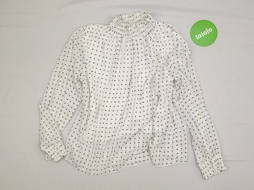 Bluzka damska z długim rękawem, rozmiar M (EUR/US/CA/CN/MX – na metce). - Kolor: biel w drobny czarny, roślinny/geometryczny wzór. - Fason: swobodny, z dekoltem w kształcie litery V zapinanym na ...
