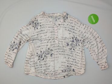 Bluzka damska w kwiaty - Krój: luźny, wydłużony tył (asymetryczny dół), długi rękaw z lekkim marszczeniem przy mankietach - Dekolt: w serek (V), delikatna stójka - Zapięcie: częściowo rozpinana na...