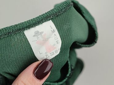 Bluzka damska w kolorze butelkowej zieleni - Fason: luźny, z krótkim rękawem typu kimono - Dekolt: okrągły - Materiał: 100% poliester (metka na zdjęciu) - Rozmiar z metki: L - Struktura tkaniny: g...