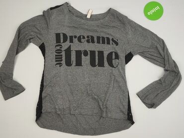 Bluzka damska MB Multiblu z długim rękawem - Marka: MB Multiblu - Rozmiar z metki: L - Materiał: 100% bawełna (miękka dzianina melanż) - Kolor: jasnoszary melanż z białym nadrukiem - Nadruk z przo...Szara bluzka damska Multiblu z długim rękawem i nadrukiem „Dreams come true” z przodu.