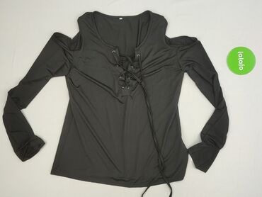 Długi rękawCzarna bluzka damska z długim rękawem i odkrytymi ramionami (cold shoulder). Dekolt w szpic z ozdobnym sznurowaniem na metalowych oczkach. Materiał gładki, lekko elastyczny, przyjemny w dotyku. Tył gładki. Rozmiar z metki: XXL. Krój dopasowany, długość do bioder. Uniwersalna – sprawdzi się na co dzień i wieczorne wyjścia. Kolor: czarny.