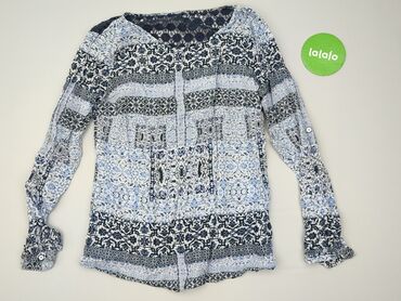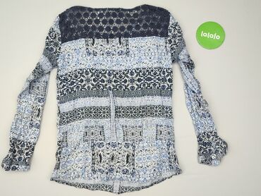 Długi rękawBluzka damska z długim rękawem, wzór patchwork/roślinny w odcieniach granatu, błękitu i bieli.