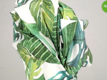 Bluzka damska RESERVED - Model: hiszpanka/off-shoulder z elastyczną gumką przy dekolcie - Wzór: tropikalne liście w odcieniach zieleni na czarnym tle - Rękawy: 3/4, bufiaste, z marszczeniem i wiąz...Stan: