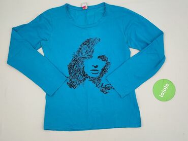 Długi rękawTurkusowa bluzka z długim rękawem z nadrukiem