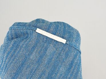 Bluzka damska marki owood w rozmiarze S. Charakteryzuje się wzorem w paski w kolorze białym i błękitnym. Bluzka posiada okrągły dekolt i ozdobne falbany biegnące przez przód oraz wzdłuż ramion, dod...