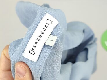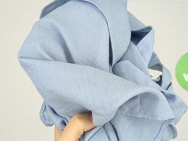 Bluzka damska w odcieniach niebieskiego z białym wzorem, ozdobiona falbanami. Ma klasyczny, okrągły dekolt i krótkie, falbaniaste rękawki, co nadaje jej lekkości. Luźny krój zapewnia komfort noszen...Stan: