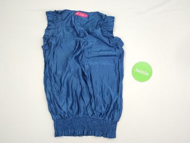 Granatowa damska bluzka bez rękawów - Fason: prosty, lekko luźny, z okrągłym dekoltem - Kolor: ciemny granat - Materiał: 100% poliester (metka na zdjęciu), tkanina lekka, miękko układająca się - R...