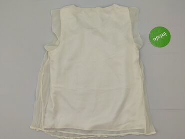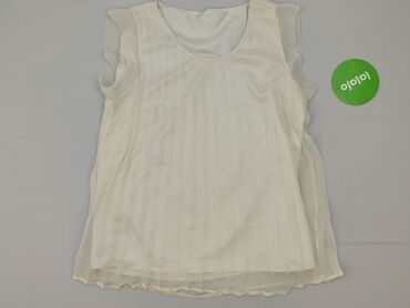 Bluzka damska bez rękawów w kolorze ecru/kremowym. - Materiał: lekko marszczona, przewiewna tkanina o wyrazistej fakturze - Krój: luźny, z falbankami przy ramionach i po bokach - Zapięcie: rząd ma...