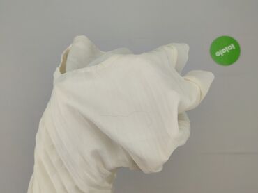 Biała, zwiewna bluzka z cienkiej, prześwitującej tkaniny. - Krój oversize z szerokimi, lekkimi rękawami 3/4. - Okrągły dekolt. - Dół oraz mankiety z delikatnym ściągaczem wykończeniowym. - Materiał...
