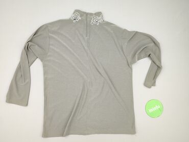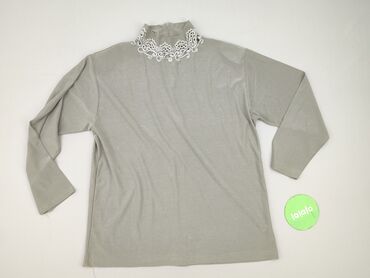 Sweter golf damski, jasnoszary ze srebrzystą nitką - Krój: dopasowany, długie rękawy - Kołnierz: wysoki golf z dekoracyjną koronkową wstawką u nasady - Dzianina: delikatnie połyskująca, z metalicz...