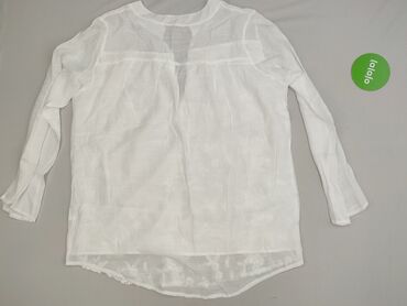 Biała koszula/bluzka damska z długim rękawem. - Krój typu tunika, luźny, z zaokrąglonym, wydłużonym tyłem. - Dekolt w serek z krótką listwą i trzema guzikami. - Na rękawach guziki do podpięcia (moż...