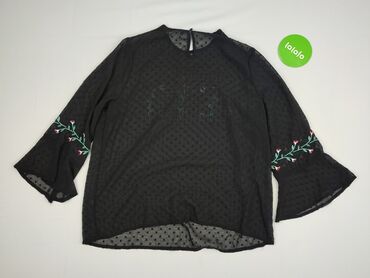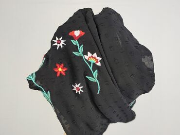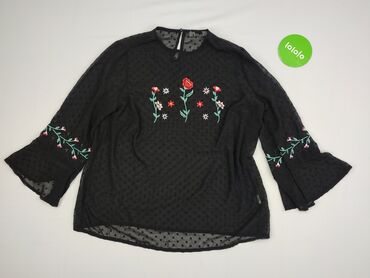 Czarna damska bluzka „New Model” rozmiar XXL - Krój: luźny, z krótkim rękawem - Dekolt: w serek z krótką listwą na dwa guziki - Ozdoba: subtelne, zielonkawe hafty kwiatowe po obu stronach dekoltu ...