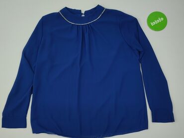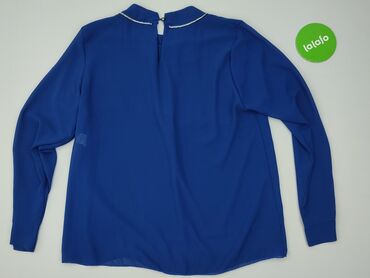 Bluzka damska w kolorze kobaltowym - Krój: luźny, lekko zaokrąglony dół - Dekolt: w kształcie litery V z krótką stójką - Rękawy: długie; na obu rękawach wszyte paski z guzikiem do podpinania (możl...Stan: