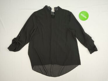 Czarna damska bluzka House, rozmiar M. - Fason: luźny T‑shirt z okrągłym dekoltem - Rękawy: krótkie, ażurowe/koronkowe wstawkami na ramionach i na całej długości rękawów - Materiał: 65% poliester,...